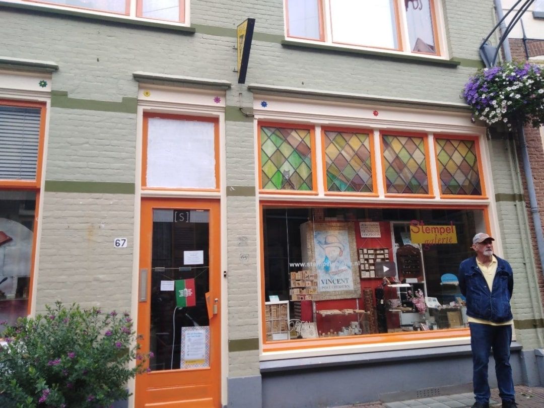 Zo is het gegaan en hij zit er, maar er zit ook een verhaal achter.Maar dat vertel ik wel persoonlijk tegen de mensen aldus Gerard Bot van de Stempelgalerie De Voet in de Overstraat.