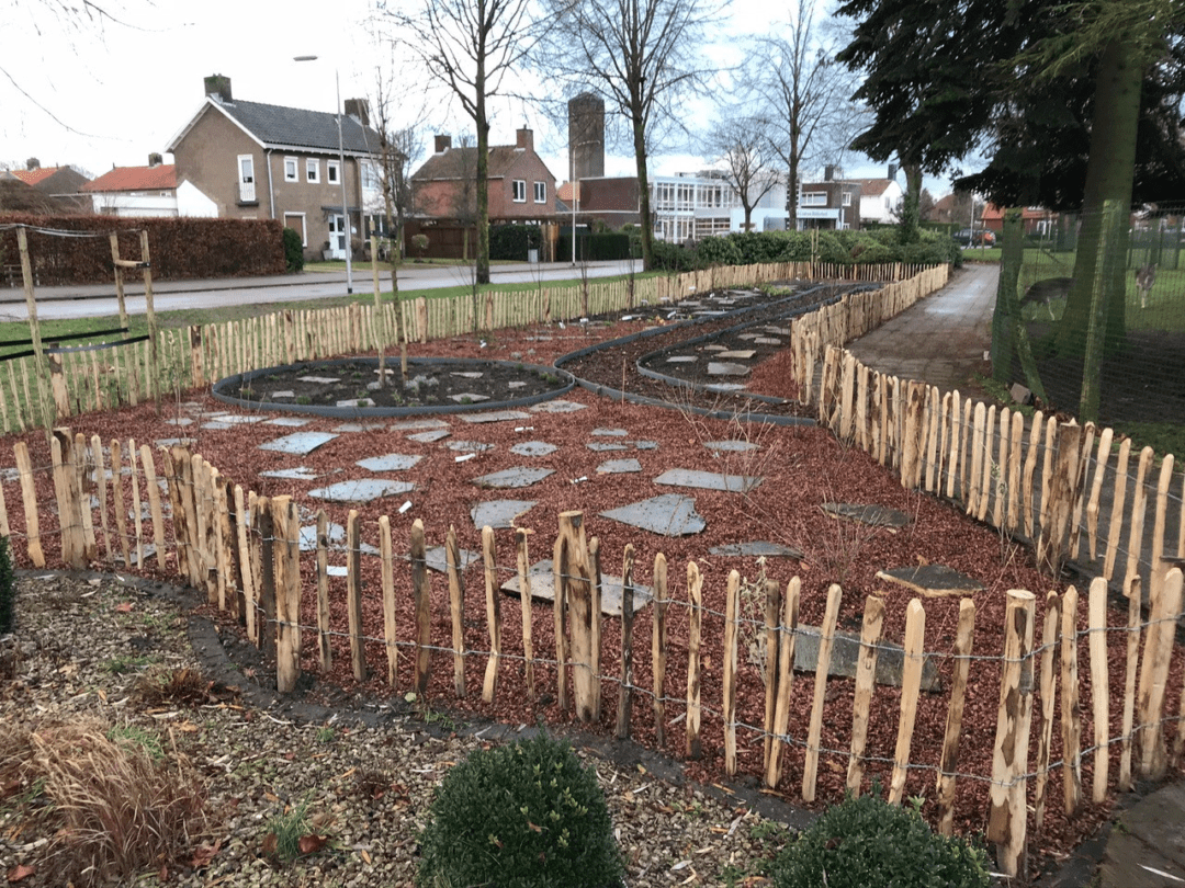 Zaterdag zijn er enorm veel planten, struiken en bomen van ruim 60 verschillende soorten aangeplant, is het pad bedekt met boomschors en zijn de resterende stapstenen gelegd. Ook is de bodem voor een deel bedekt met cacaodoppen. Spontaan haakten meer buurtbewoners aan om te helpen met planten. Samenwerken in het (eetbaar) groen verbindt mensen, het fleurt de buurt mooi op en straks vanaf het voorjaar is er nog veel meer te ontdekken.