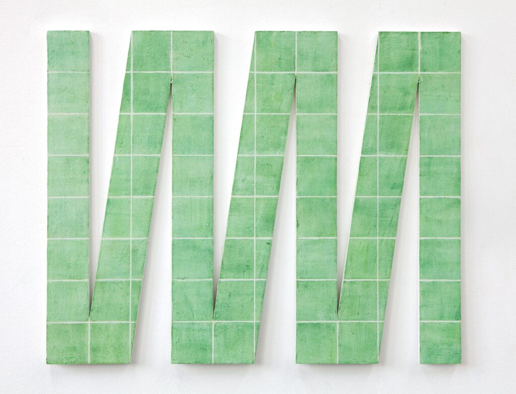 Zaida Oenema laat het raster, dat altijd de grondlaag is van haar werk, letterlijk los en gebruikt het als vorm om mee te spelen. Ze bouwt de beelden op door te experimenteren met papierpulp, waarin materiaal, formaat en kleurgebruik haar de mogelijkheid geven om vrijer en intuïtiever te werk te gaan.